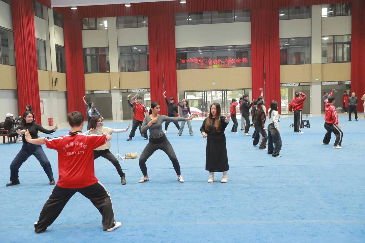 图为达人们在登封学习少林功夫。在郑州,达人们穿梭于“只有河南·戏剧幻城”的光影与夯土墙之间,感受一场场戏剧讲述三千年文明的方式;在河南博物院,贾湖骨笛与莲鹤方壶等国宝文物静静陈列,达人们看见了中原文化的深邃底蕴;在登封少林寺,达人们与塔沟武校的学员共同体验中国功夫;夜幕降临,《禅宗少林·音乐大典》让他们纷纷感叹:“露天舞台、以山为幕!这是我们见过的最酷炫的演出!”洛阳:千年古都,盛世芳华