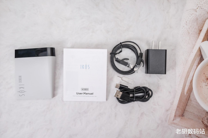 外包装就不多做介绍了,直接看看包装清单:W3800设备、Type-C电源线、RJ45网线、通用适配器、取卡针和说明书。