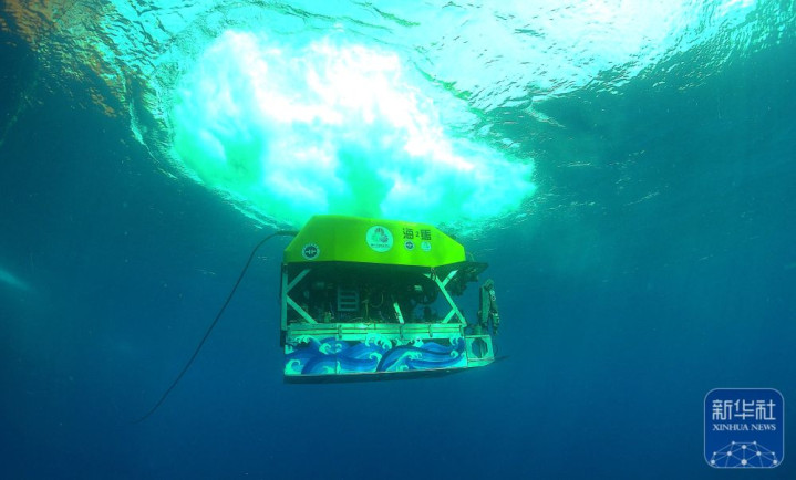↑9月18日,水中的“海马”号深海遥控潜水器。(陈驰摄)