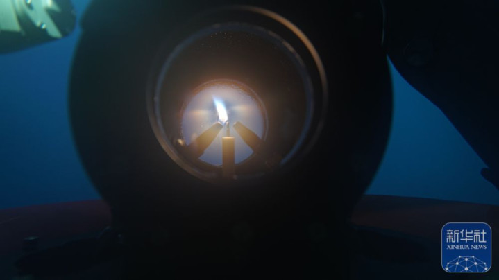 ↑9月18日采火装置在海底成功引燃“源火”。(广州海洋地质调查局供图,闫樨霖摄)